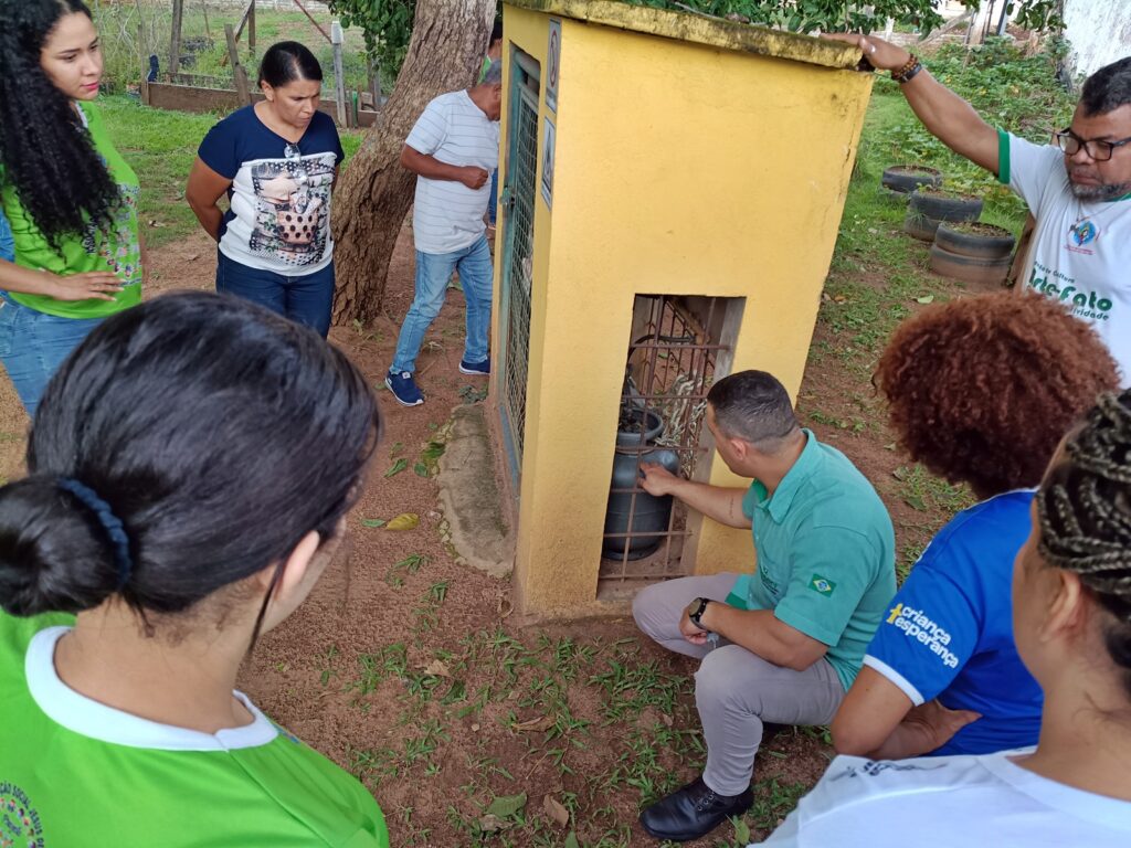 A formação aconteceu na Q. 405 Norte Alameda 7, 2 – Plano Diretor Norte, Palmas – TO, e foi organizada em quatro módulos, combinando conteúdos teóricos e atividades práticas, com as equipes da Escola Estadual João Paulo II e do Ponto de Cultura Arte-Fato Centro de Criatividade.