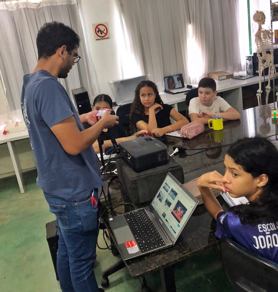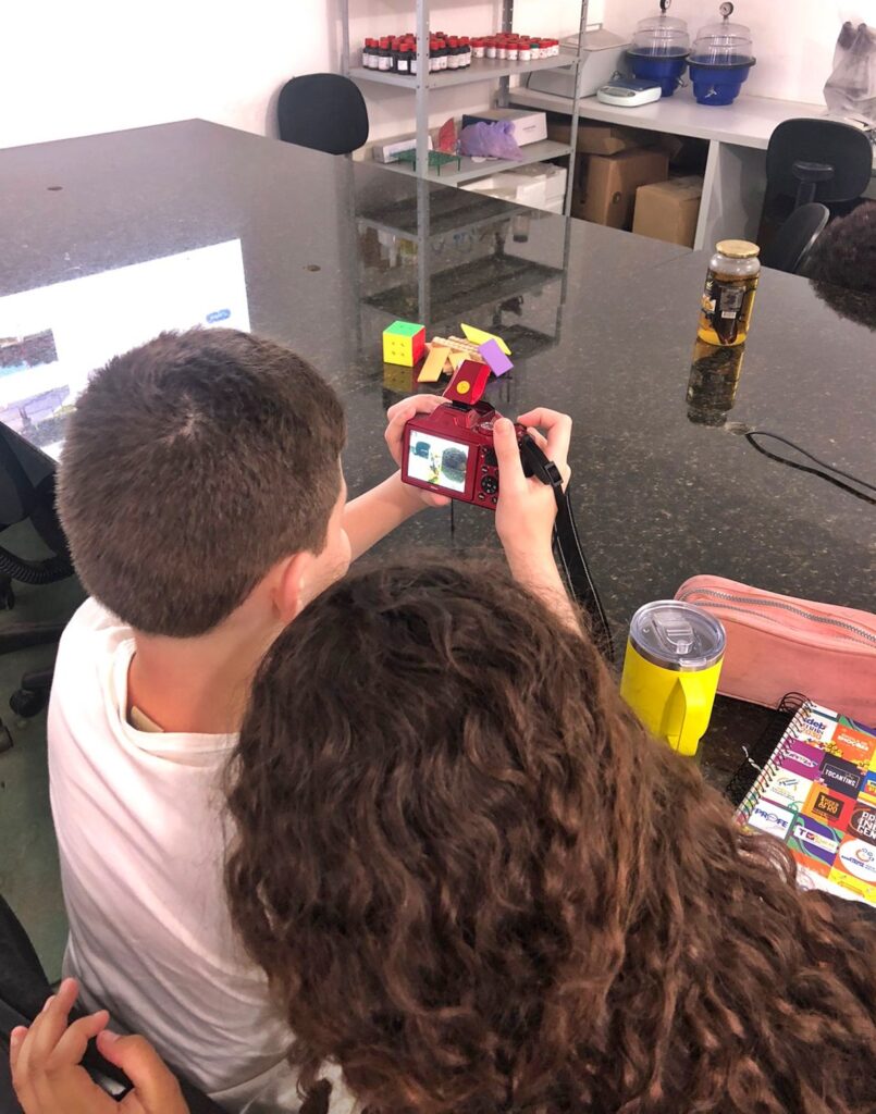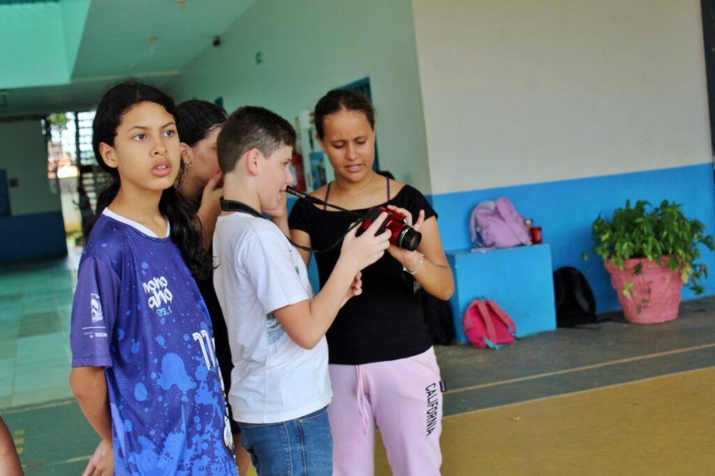 Durante a atividade, os estudantes circularam pelo ambiente escolar, registrando imagens sob orientação do profissional. A proposta buscou desenvolver o olhar sensível dos adolescentes, despertando neles a percepção de que cada fotografia carrega um recorte único da realidade e pode ser uma poderosa forma de expressão.