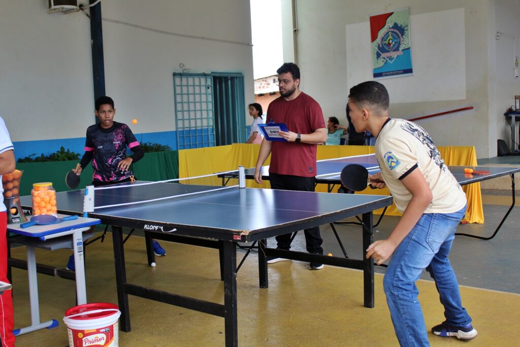 Já em 5 de dezembro, a programação ocorreu no pátio da Escola João Paulo II, na ARNO 42. A modalidade destaque foi o tênis de mesa (pingue-pongue), organizado pelo professor Jocel Santiago, que apresentou as regras, explicou a dinâmica do sorteio dos grupos e conduziu as partidas com transparência, garantindo a compreensão e a participação de todos os competidores.