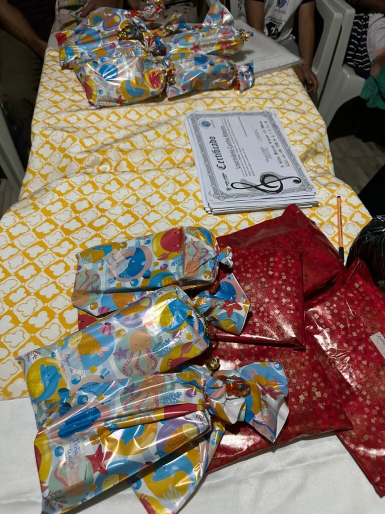 Outro diferencial do projeto é a realização de aulas assíncronas de música, que contam com o apoio de profissionais da área musical da Associação Ação Social Jesus de Nazaré – AASJN. Esses profissionais realizam orientações formativas com os instrutores locais, que posteriormente repassam os conteúdos e práticas aos alunos do projeto.