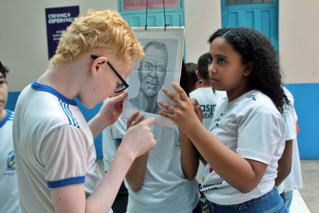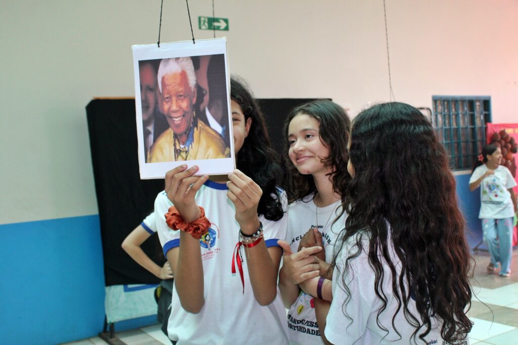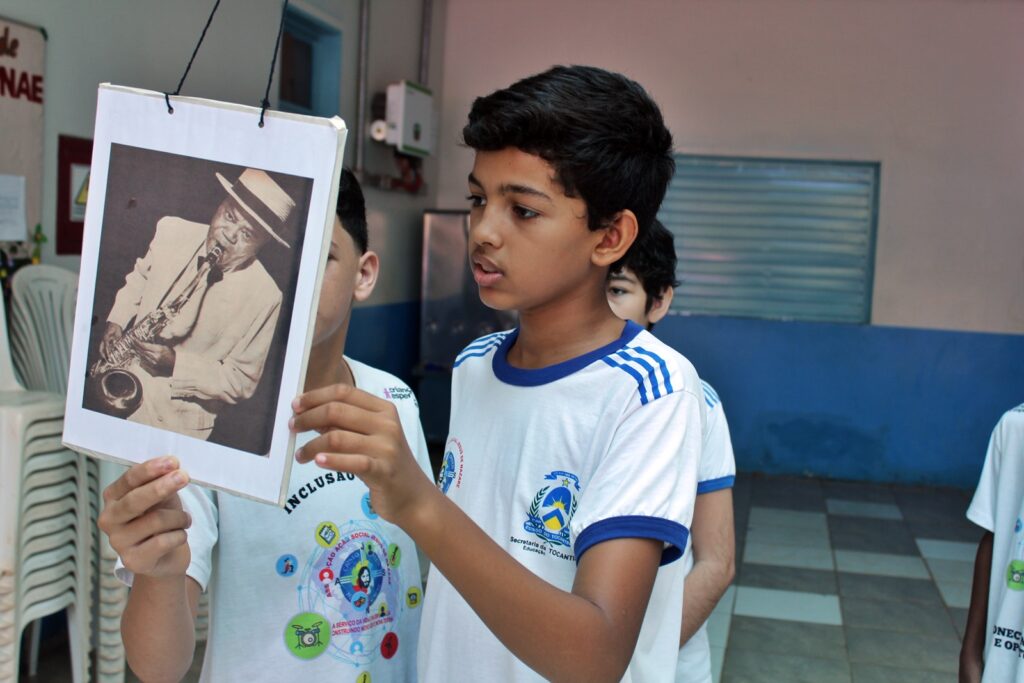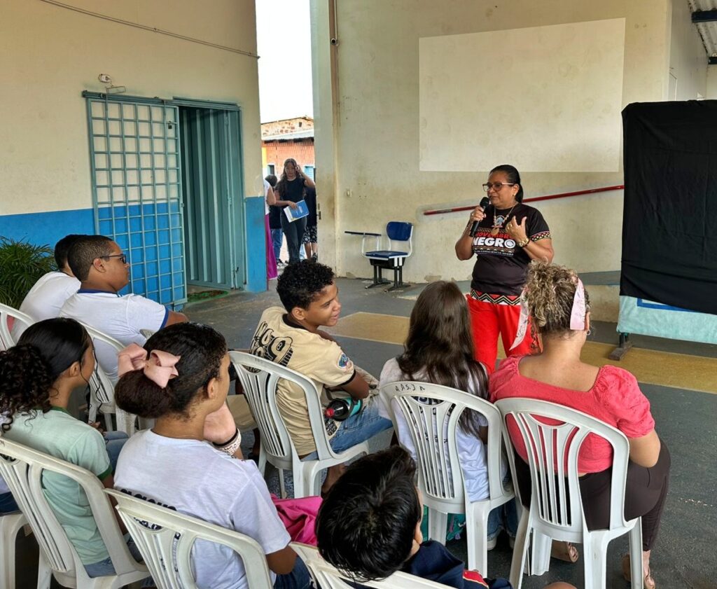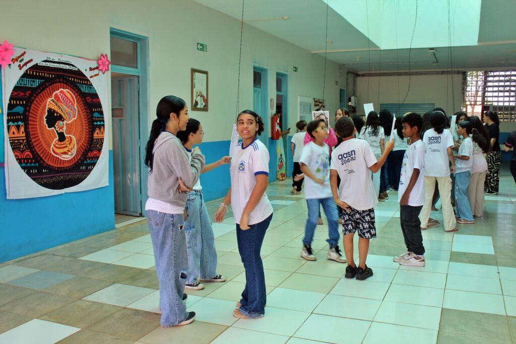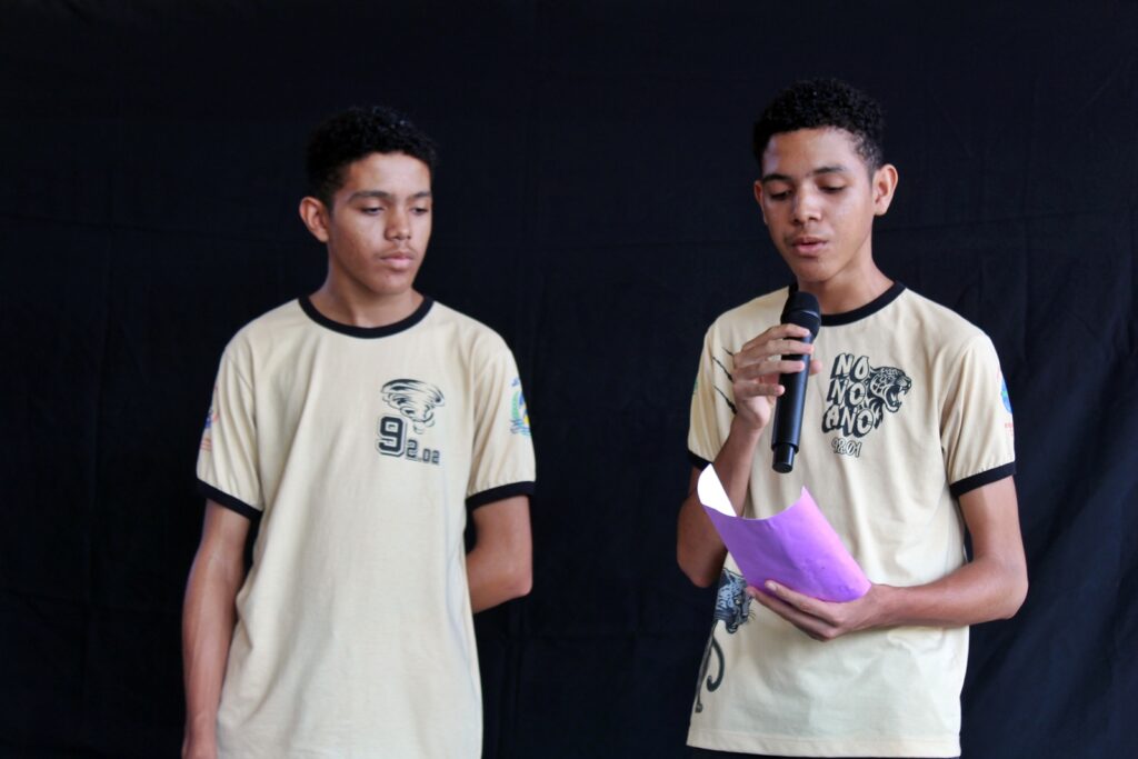 Estudantes participantes do Projeto Conectando Novos Saberes, apoiado pelo Criança Esperança/UNESCO, também integraram as atividades. Sob orientação da instrutora Edriana Sousa, o grupo apresentou a peça teatral “O respeito não tem cor”, reforçando a importância do combate ao racismo e da valorização das identidades dentro e fora do ambiente escolar.
