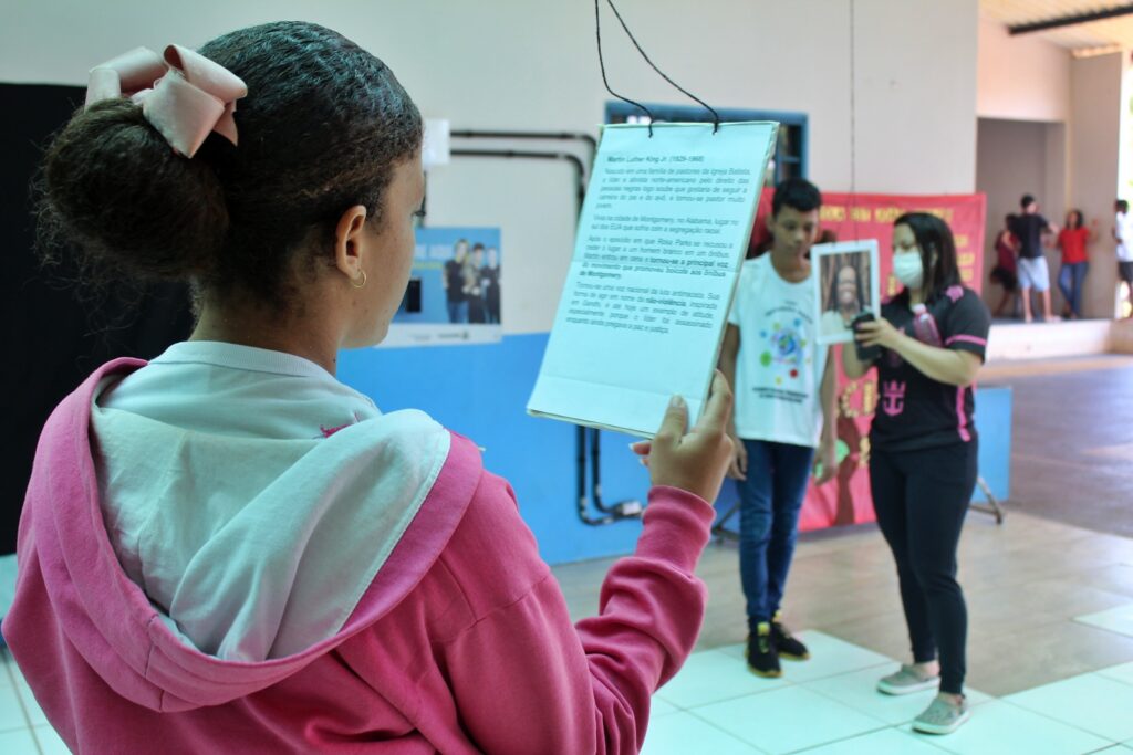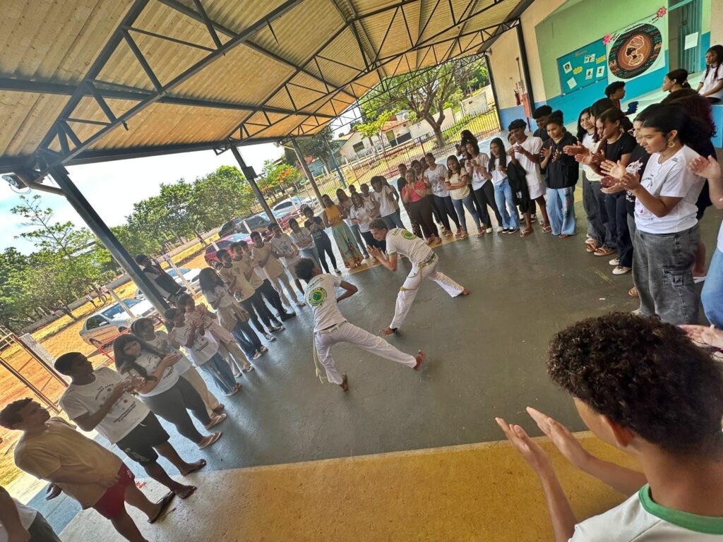 A programação contou, ainda, com a exposição de biografias de personalidades negras, apresentação de poemas, e a performance em Libras conduzida pela professora Luelma, com o tema “Racismo x Inclusão”. A roda de capoeira destacou o protagonismo juvenil e a força da cultura afro-brasileira.