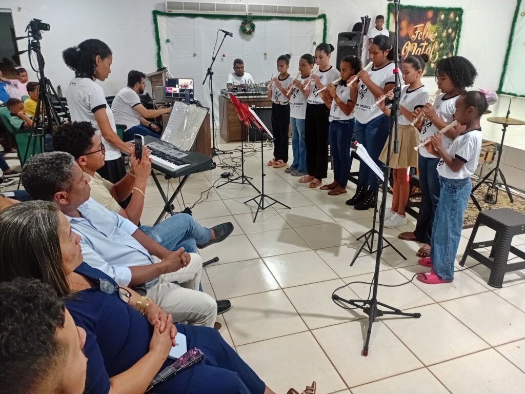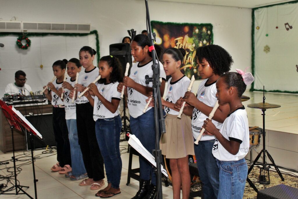 A programação teve início com a apresentação da turma de flauta, que emocionou o público com um momento devocional de reflexão e oração, reforçando a importância da luz, proteção e defesa dos direitos de crianças e adolescentes.