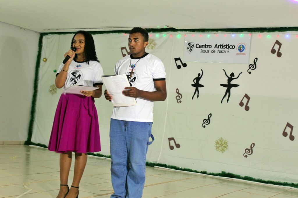 A cerimônia foi aberta pela coordenadora do projeto, Irmã Verônica Correia, que destacou a importância das atividades artísticas no desenvolvimento humano e social dos participantes. A condução da noite ficou a cargo de dois jovens talentos do projeto, que apresentaram o evento com entusiasmo e naturalidade.